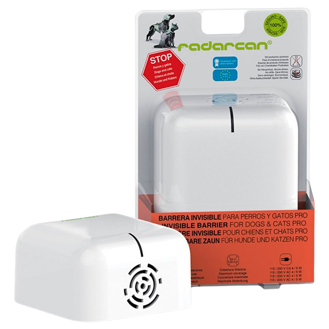 Equipo que emite ondas de ultrasonidos que afectan los sistemas auditivos de perros y gatos, haciendo insoportable su permanencia en la zona de cobertura.