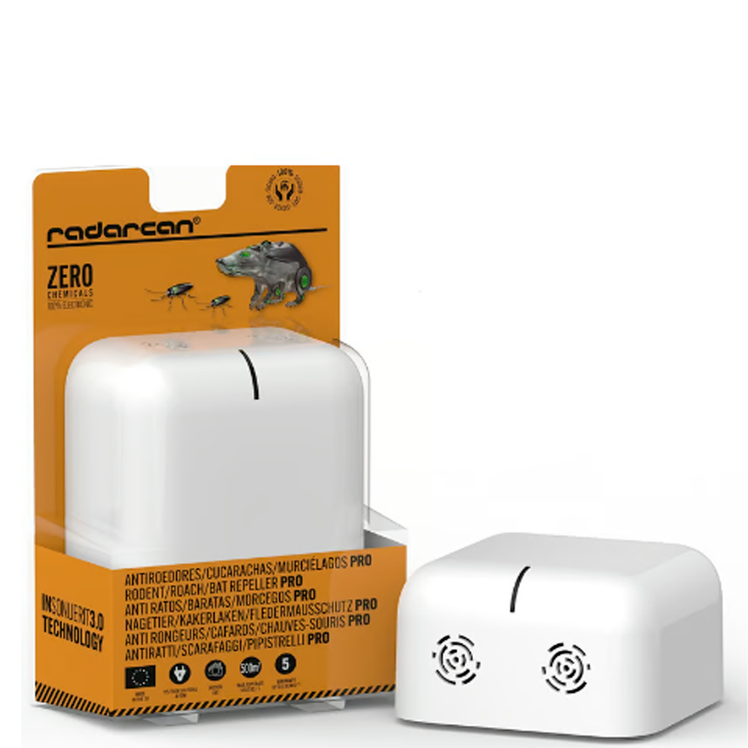 Modelo industrial más potente con doble emisor ultrasónico para ahuyentar las ratas y murciélagos en áreas que requieren de mayor protección de cobertura, hasta de 500 m2 en interiores y 100m2 en exteriores. Las potentes ondas de ultrasonidos que emite intermitentemente causan un malestar insoportable en ratones y cucarachas haciéndoles huir del área de acción de las ondas ultrasónicas.
